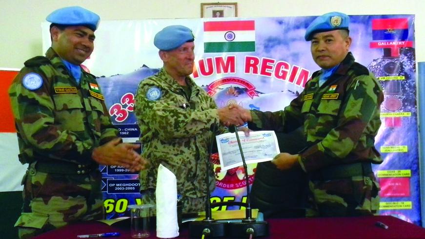 The Handover/Takeover which marks the 20th and 21st rotation of Logbatt was held on the 27th of March in Camp Ziouani. The outgoing Commanding Officer Lt Col Vinay Kumar Gautam handed over responsibility to Lt Col Sadeep Khawas. DFC, Brigadier-General Mauri Tapani Koskela officiated at the ceremony.