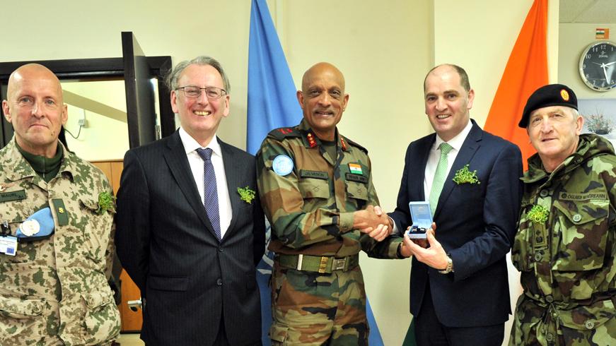 Irish Minister of State with responsibility for Defence Mr Paul Kehoe T.D visited UNDOF on the 17 Mar 2017. The purpose of this visit was to meet Irish troops in UNDOF and attend the Irish Contingents medal Parade. The Ambassador of Ireland to Israel, Her Excellency Ms. Allison Mary Kelly and the Deputy Chief of Staff (Operations), Maj Gen Kieran Brennan accompanied the minister on his visit.